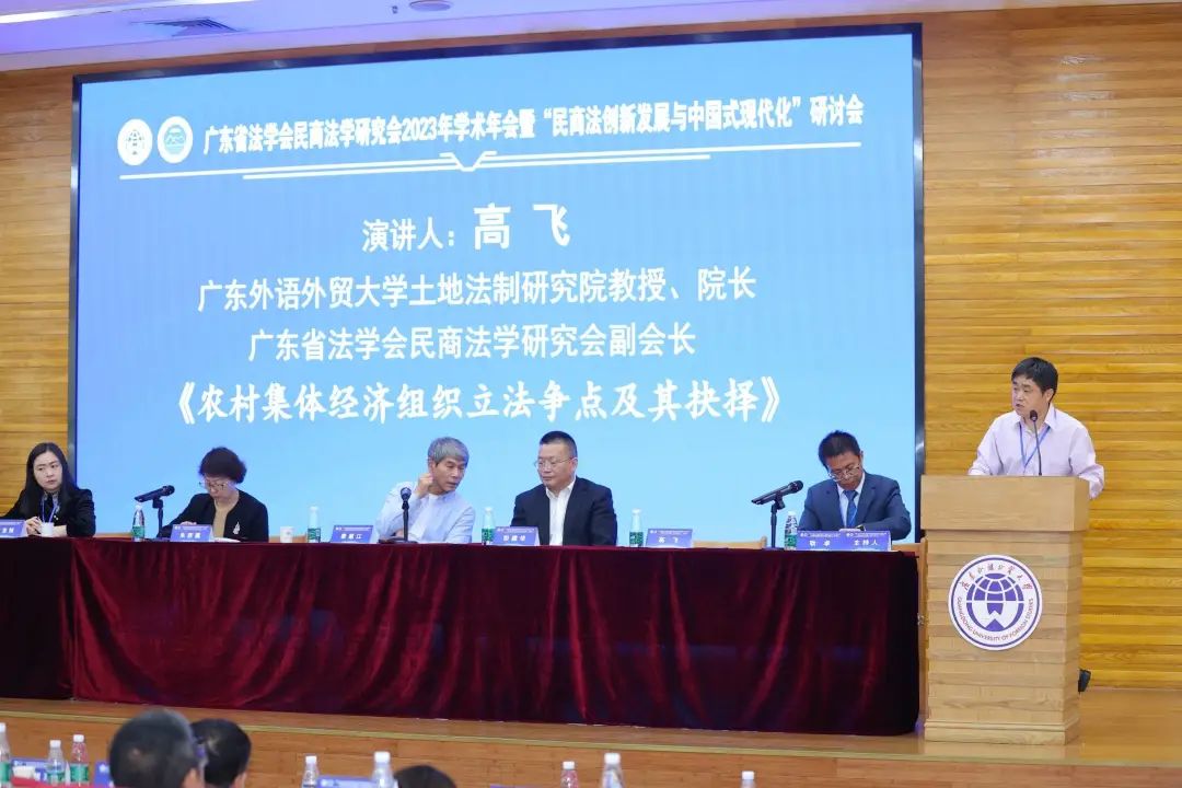 主旨演讲环节,由广东外语外贸大学土地法制研究院教授、名誉院长,云山(法学)工作室首席专家,广东省法学会民商法学研究会名誉会长陈小君主持,中国人民大学法学院教授、中国法学会民法学研究会会长王利明,对外经济贸易大学法学院教授、中国法学会国际经济法学研究会会长沈四宝,中国政法大学民商法学院教授、中国法学会商法学研究会会长赵旭东进行演讲。